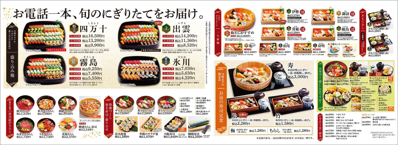 ※出前は通常、寿司桶でのお届けになります。使い切り容器をご希望の方は、ご注文時にお申し付け下さい。