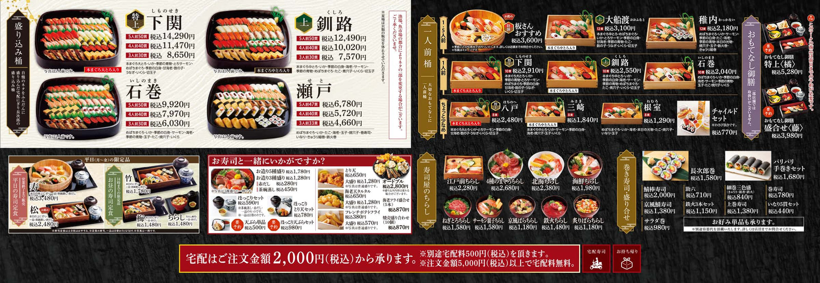定番のにぎり寿司や、ちらし寿司、サイドメニューなど
